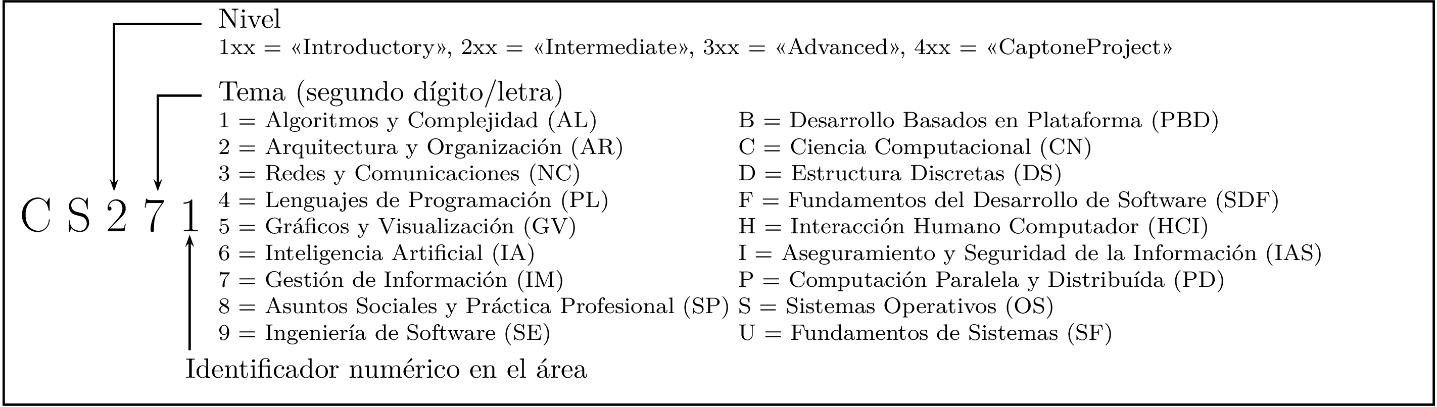 Los cursos se encuentran codificados bajo el esquema que se muestra en la Figura 3.1.